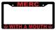 Black Merc With A Mouth license plate frame made from high impact ABS plastic, covered with color vinyl printing.