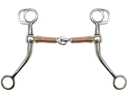 Showman Stainless Steel Tom Thumb Bit w/ 5" Copper Wrapped Snaffle Mouth. This bit features 7" cheeks. For an average full size horse.