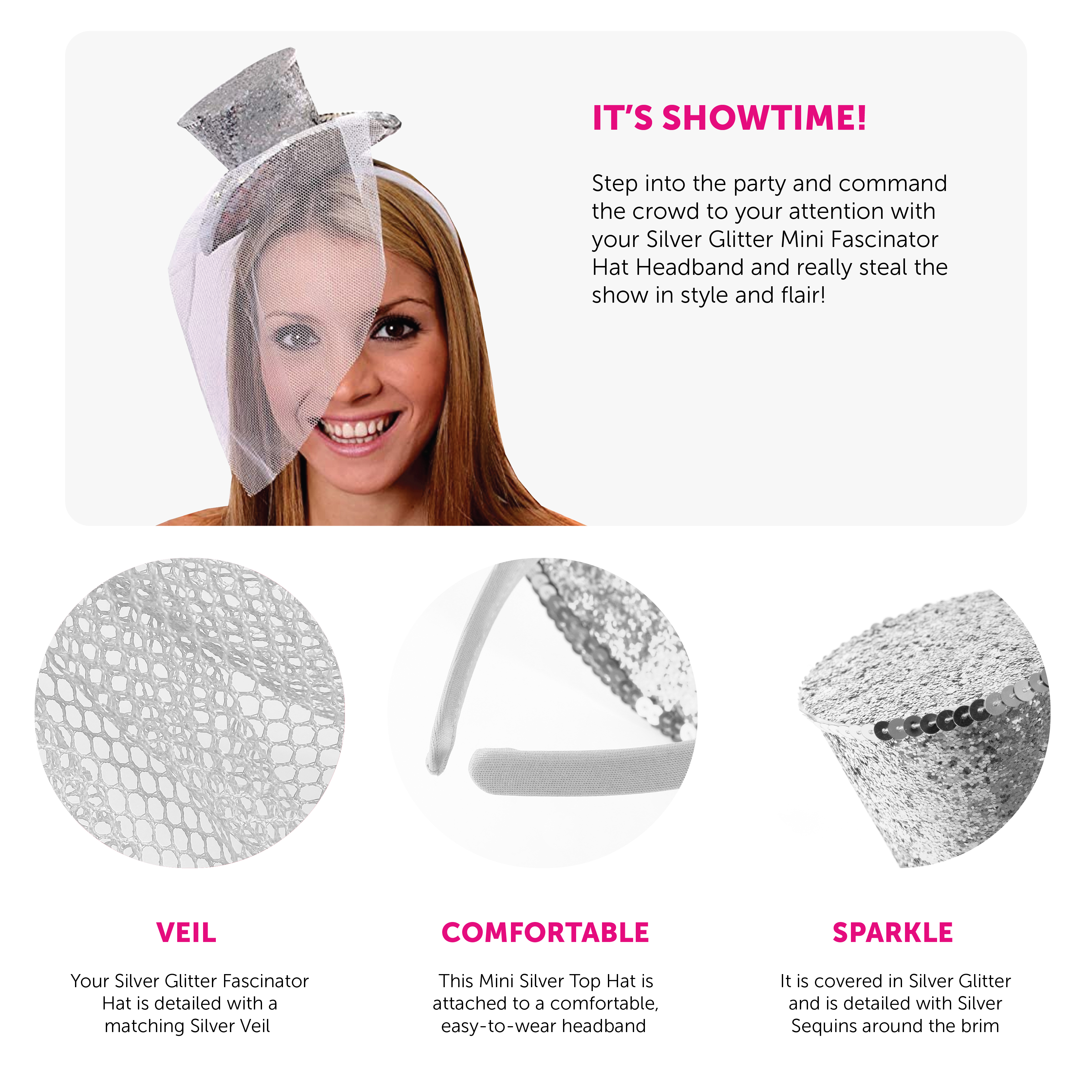 PERFECT FOR ANY FANCY DRESS EVENTS: Whether it be for a fancy dress outing, or any other party or event, you can count on our Mini Silver Glitter Fascinator Top Hat for some great memories!