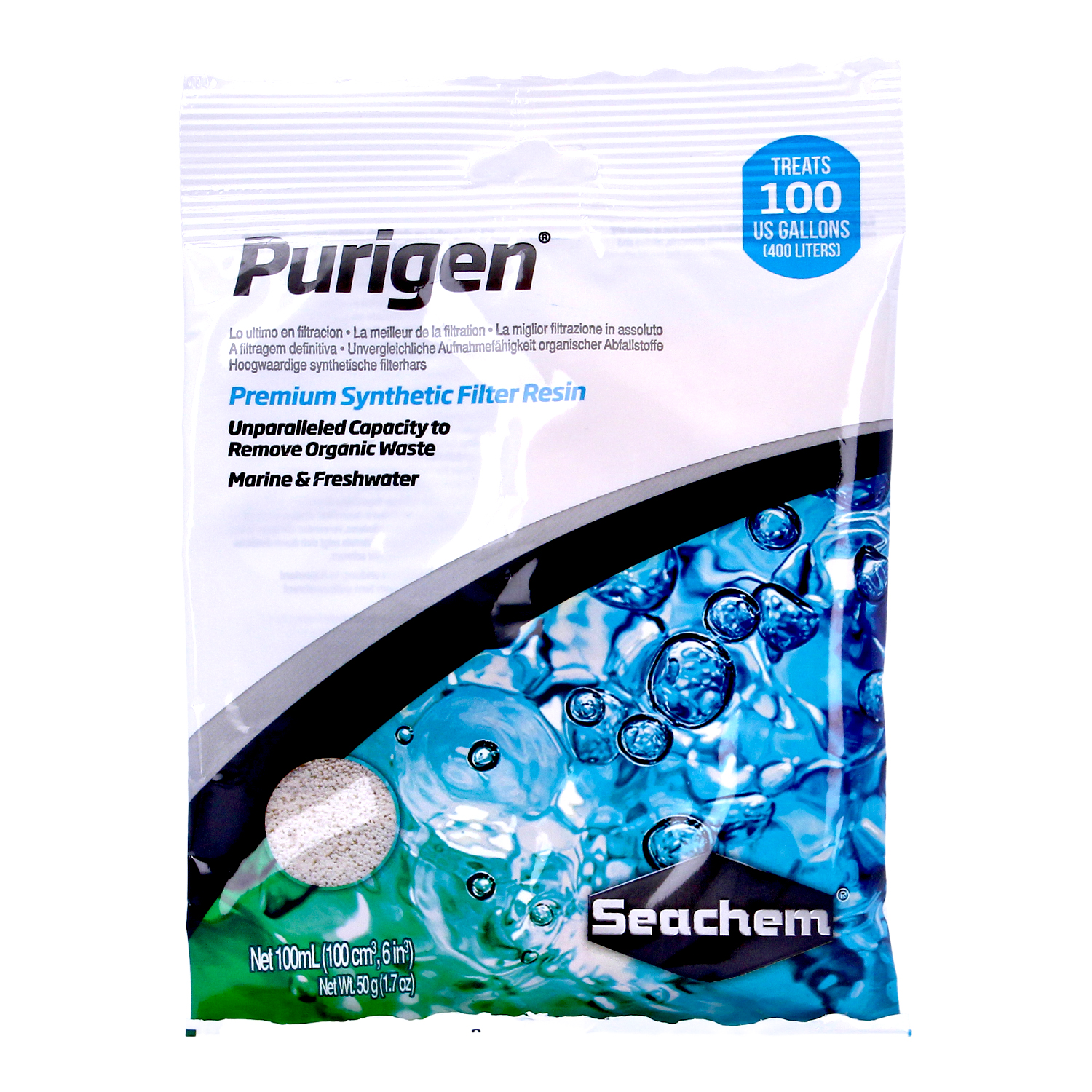 Purigen® is a premium synthetic adsorbent that is unlike any other filtration product. It is not a mixture of ion exchangers or adsorbents, but a unique macro-porous synthetic polymer that removes soluble and insoluble impurities from water at a rate and capacity that exceeds all other competing products by over 500%. Purigen® controls ammonia, nitrites and nitrates by removing nitrogenous organic waste that would otherwise release these harmful compounds. Purigen’s impact on trace elements is minimal. It significantly raises redox. It polishes water to unparalleled clarity. Purigen® darkens progressively as it exhausts, and is easily renewed by treating with bleach. Purigen® is designed for both marine and freshwater use.