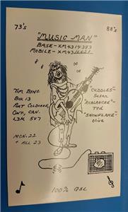 WOW! ........... RARE VINTAGE "HAM CB CITITZENS BAND BASE STATION SHORT WAVE RADIO QSL TRADING CARD * MUSIC MAN - TIM BYNG - GRAPHICS ART : - PORT CALBORNE ONTARIO CANADA" WOULD LOOK GREAT FRAMED - VERY UNIQUE ITEM * JUST IN! (great find!) additional auctions ship for free! Buy more - save More ......