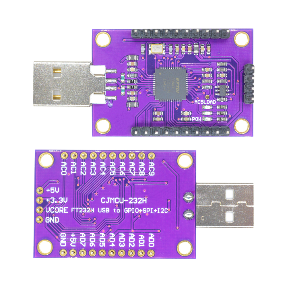 CJMCU-FT232H is a single channel USB 2.0 Hi-Speed (480Mb/s) to UART/FIFO IC.  It has the capability of being configured in a variety of industry standard serial or parallel interfaces.