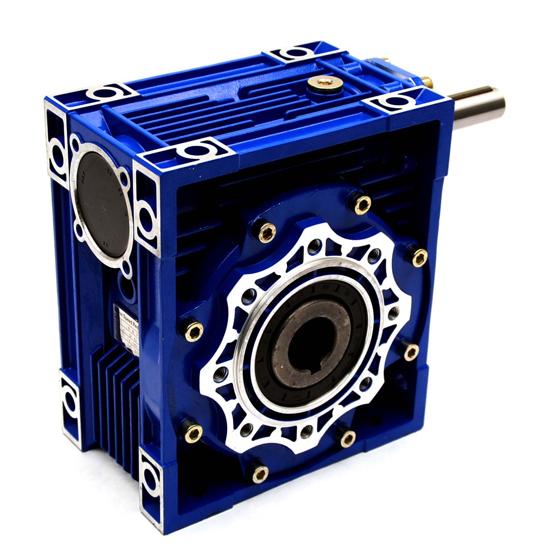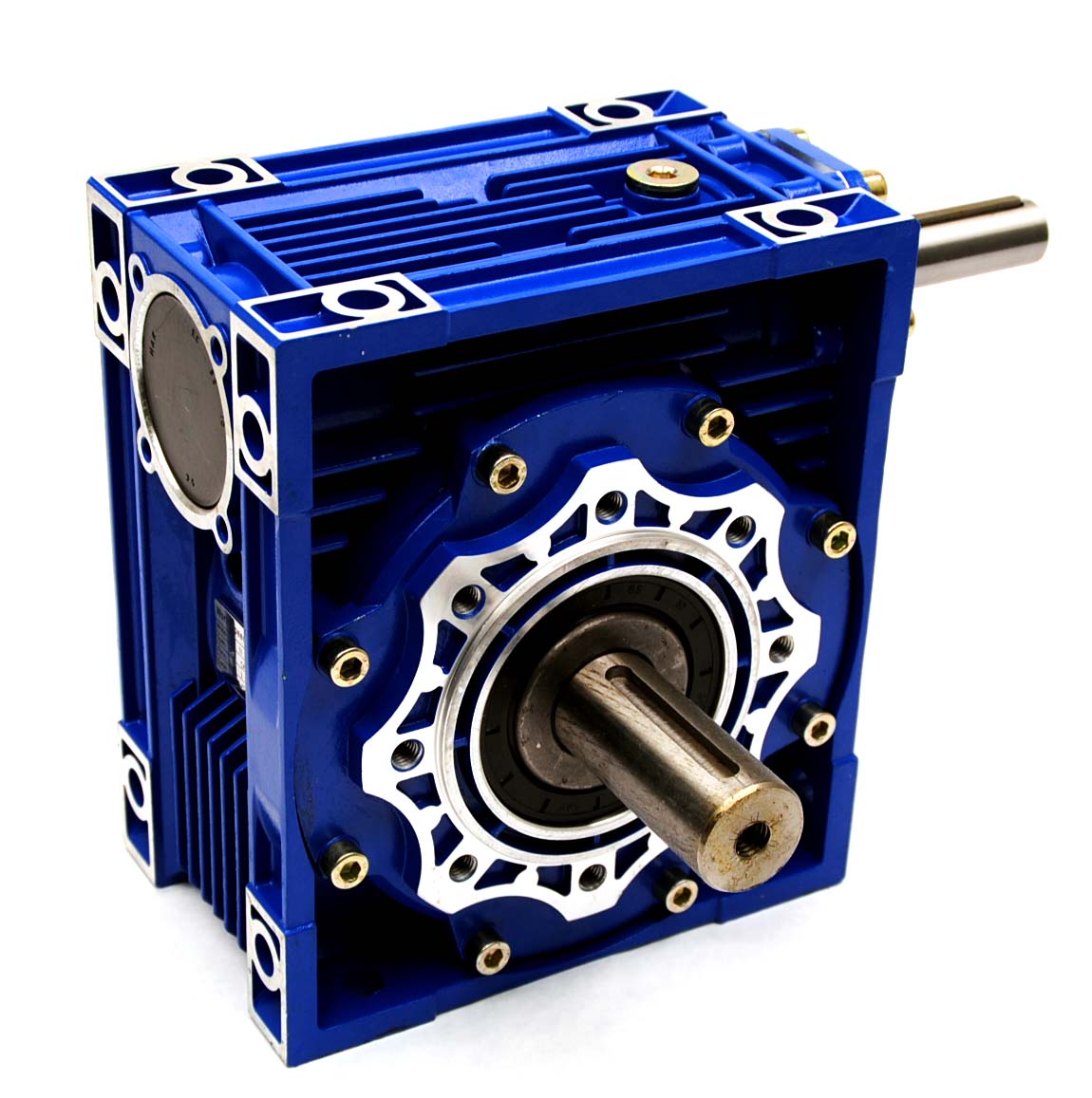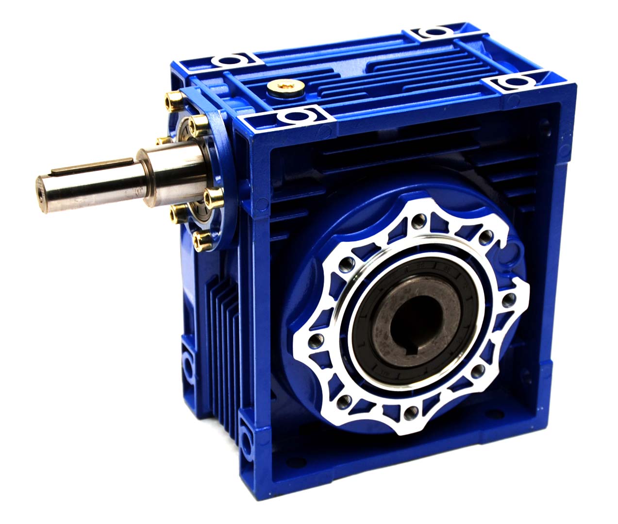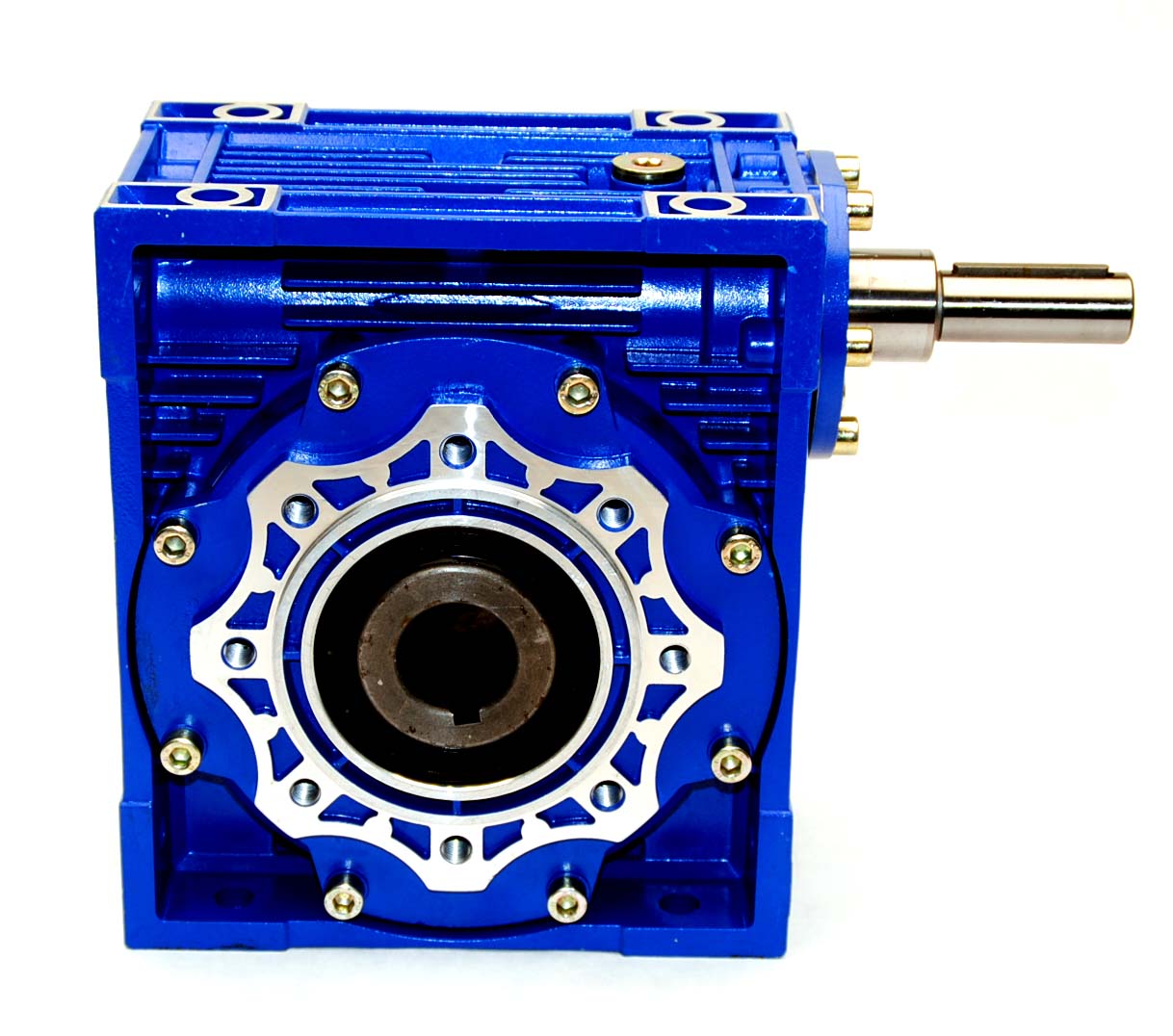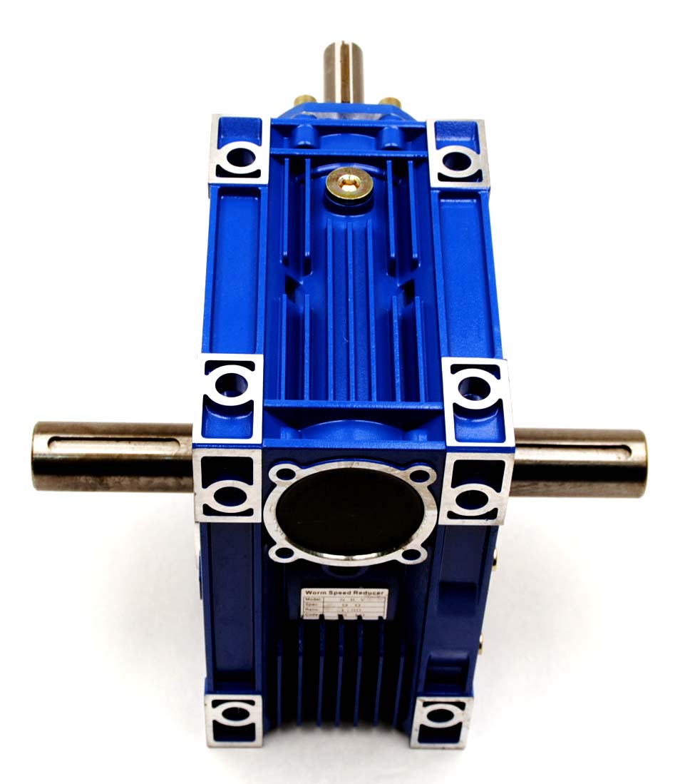 RV090 series worm gear coupled speed reducer. This 100:1 ratio speed reducer is rated for 1.12 HP input at 1750 RPM on a 7/8" diameter x 3-1/2" long keyed shaft. Output is 2389 lb/in on a hollow 1-3/8" diameter x 5-1/2" long keyed shaft. High quality reducer has an all aluminum heat sinking designed housing with epoxy coating. You can add a single output shaft (1-3/8" x 3" usable) for $24.99 or a double output shaft (2X 1-3/8" x 3" usable) for $29.99. Shipping weight: 32 lbs. M1-4-5 |