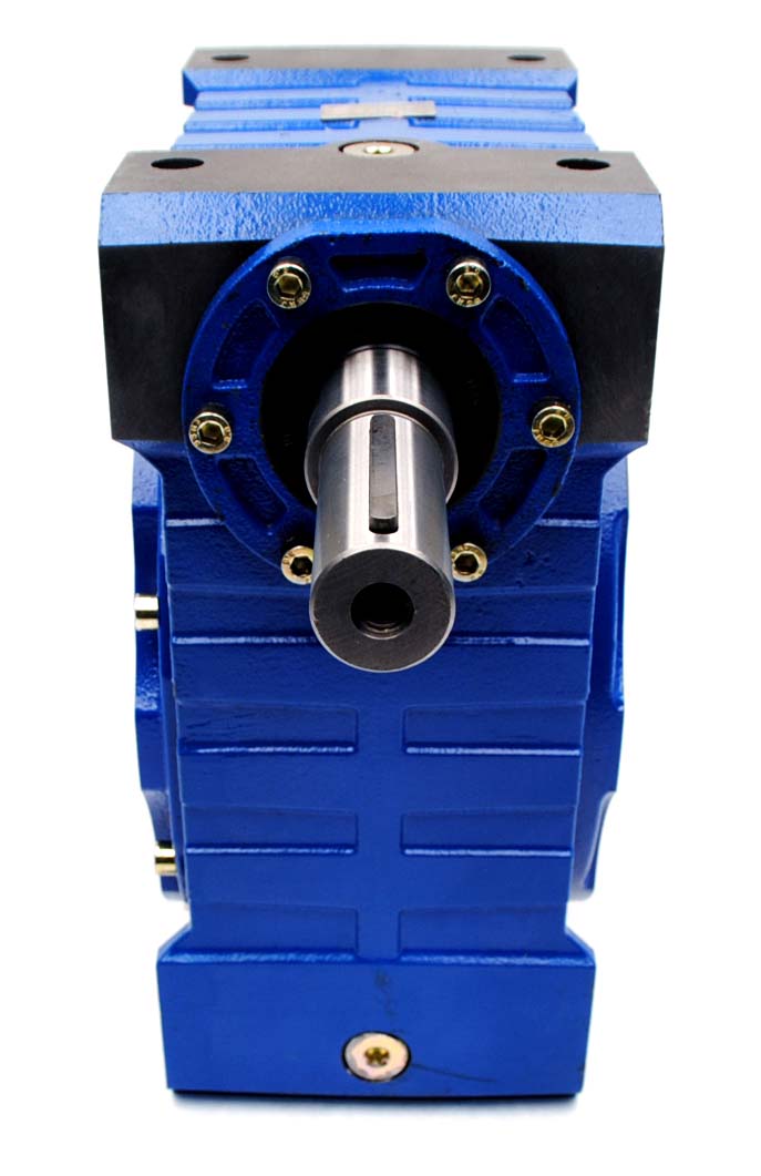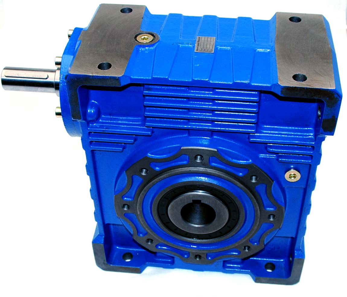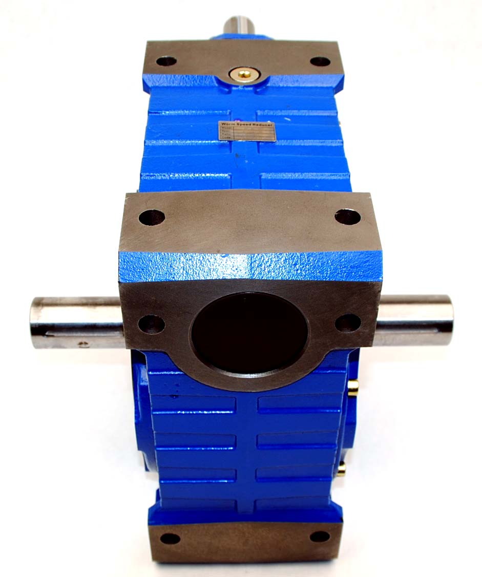 RV150 series worm gear coupled speed reducer. This 50:1 ratio speed reducer is rated for 9.05 HP input at 1750 RPM on a 1-3/8" diameter x 4-1/4" long keyed shaft. Output is 12387 lb/in on a hollow 2" diameter x 7-7/8" long keyed shaft. High quality and heavy duty cast iron reducer with epoxy coating. You can add a single output shaft (2" x 4" usable) for $39.99 or a double output shaft (2X 2" x 4" usable) for $49.99. Shipping weight: 265 lbs. |