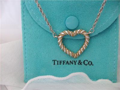 Estate Tiffany & Co 18K & Sterling Silver Heart Necklace