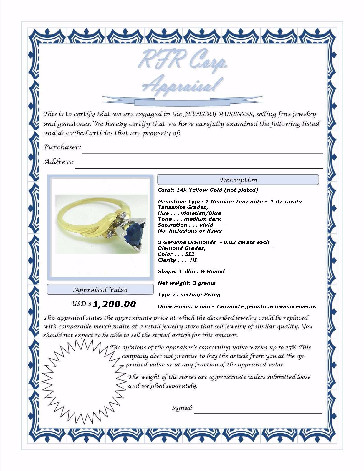 GENUINE 1.07 carats TANZANITE & DIAMONDS 14k YELLOW GOLD RING Carat: 14k Yellow Gold (not plated)