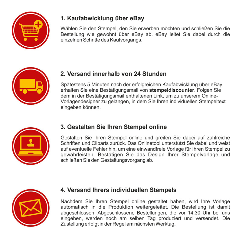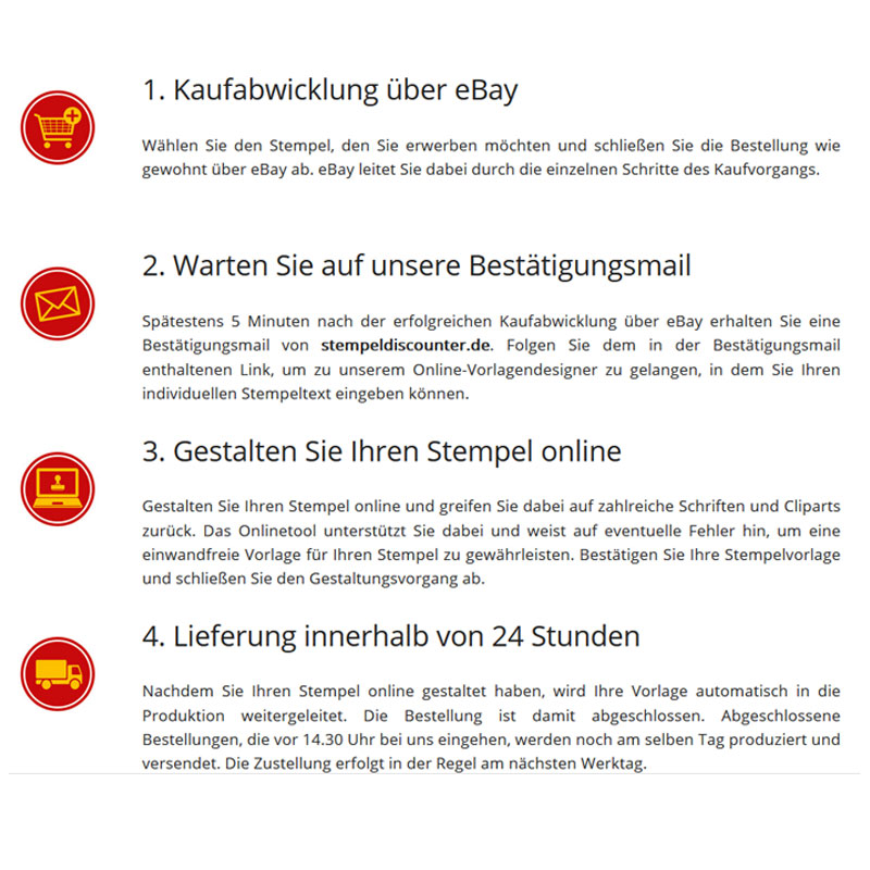 Bitte beachten Sie, dass wir für diesen Service darauf angewiesen sind Ihren individuellen Stempeltext bis 14.30 Uhr vorliegen zu haben. Informationen dazu entnehmen Sie bitte den Bestellinformationen.