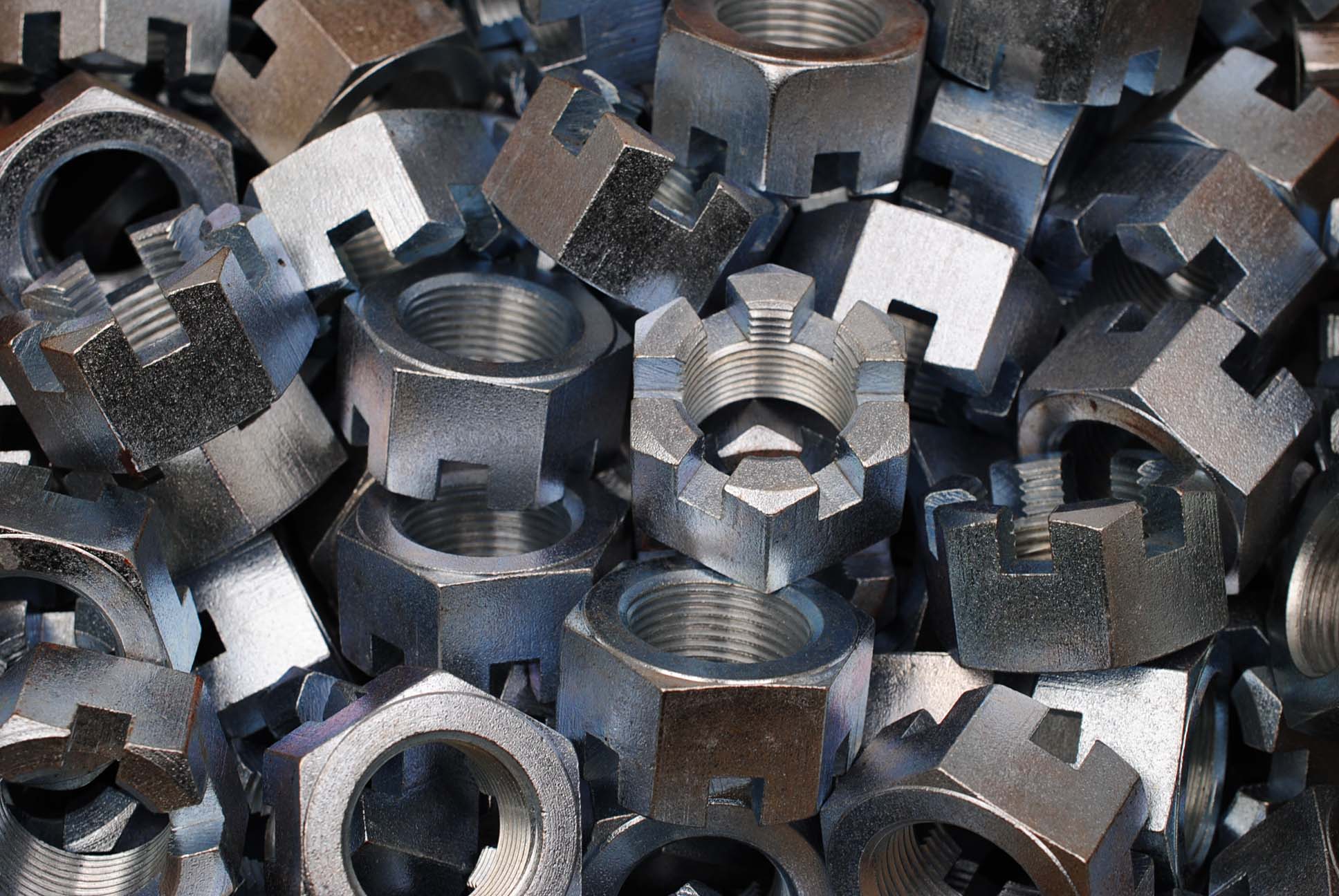 These zinc plated nuts are 1-1/4-12 thread with a 1-7/8" hex.