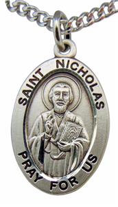 Saint Nicholas Oval Sterling Silver 7/8" Medal w/ 20" Chain Boxed Made in USA