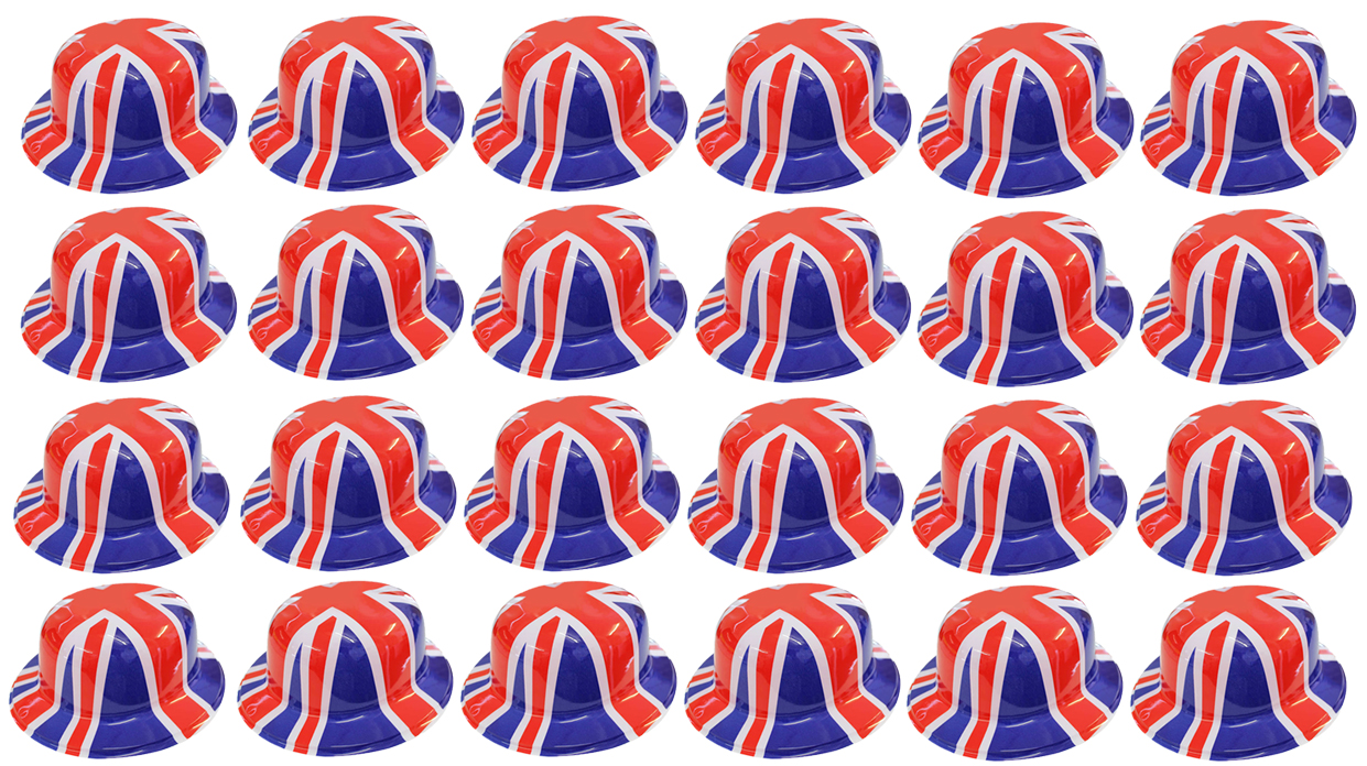 UNION JACK BOWLER HATS: Make a grand appearance for any British event there may be with our brilliant Union Jack Flag Plastic Bowler Hats for the most memorable events and occasions!