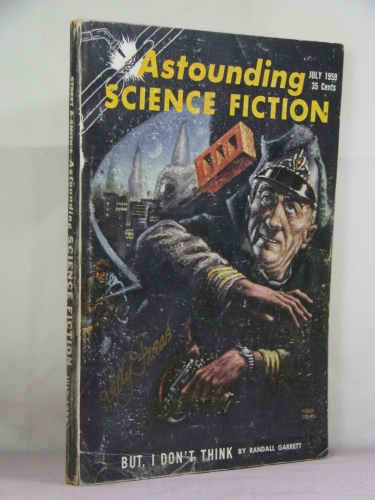 Description: A digest size magazine with cover date of July 1959. Stories by some of the best of the magazine authors. Signed by story author Algis Budrys on the first page of his story without inscription or personalization. Signed by artist Frank Kelly Freas in gold pen on the front cover without inscription or personalization.