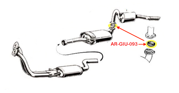 This is a new center exhaust to tail pipe sealing ring for all Alfa Romeo 2000Chassis 102and 2600Chassis 106models. Inner diameter: 51 mm. Outside diameter: 65 mm.Part #: AR-GIU-093