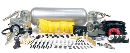 VIAIR’s Super Duty Onboard Air System is a pre-packaged compressed air solution that provides two fast 325C, 33% duty cycle compressors, a 2.0 gallon air tank, inline pressure regulation, and all components needed to install a working system capable of inflating tires, managing air locking differentials, and more. For up to 35" tires.