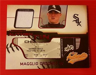 "MAGGLIO ORDONEZ (SP) RIPPED GAME USED JERSEY RELIC #JA-MO CHICAGO WHITE SOX - 2002 FLEER AUTHENTIX MLB BASEBALL" GREAT DESIGN - VERY UNIQUE ITEM - and a MUST HAVE - (VERY TOUGH FIND) - SHIPPING is FREE and ALL ADDITIONAL ITEMS SHIP FOR FREE.