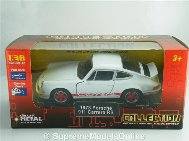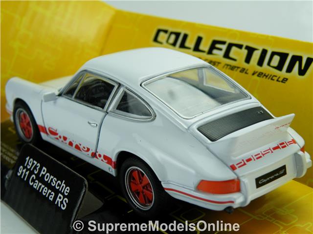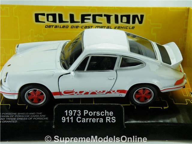 This is a die cast metal Porsche 911 Carrera RS 1973 model car in white, part of the welly range. A lovely detailed model. The model is in mint condition and the packaging also is in completely shop fresh mint condition, comes packaged in a cardboard window box, model can easily be removed from the box and has rolling wheels, also features opening front doors and pullback. This item would make an excellent addition to your collection and a fantastic display piece.