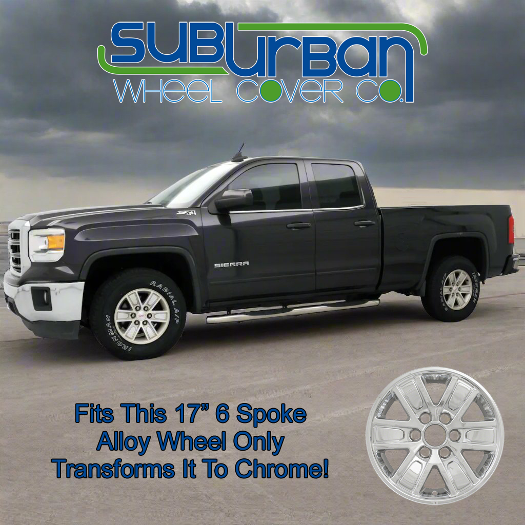 This listing is for a brand new set of (4) chrome wheel skins for 2014-2018 GMC Sierra 1500 and 2019 GMC Sierra 1500 (old body style) models with the matching 17" 6 spoke aluminum wheel only (see truck and wheel photo). The center caps shown are NOT included. They should already be on your vehicle. To install follow these steps: