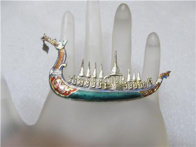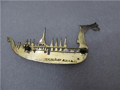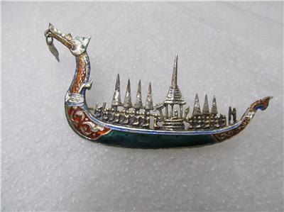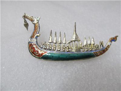 Vintage Chinese Siam Royal Barge “Suphanahongse” Sterling Silver Brooch/Pin.