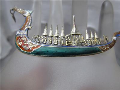 Chinese Siam Gilded Sterling Silver 925 Cloisinne Enamel Royal Barge “Suphanahongse”