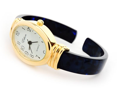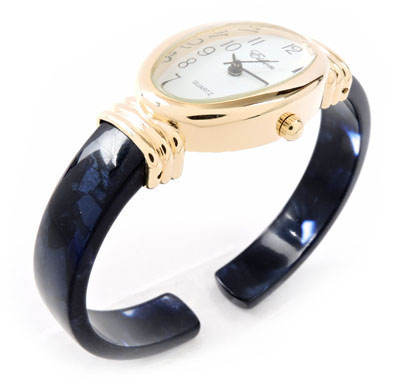 face with Dark Blue Tortoise Bangle Cuff Watch. Acrylic band
