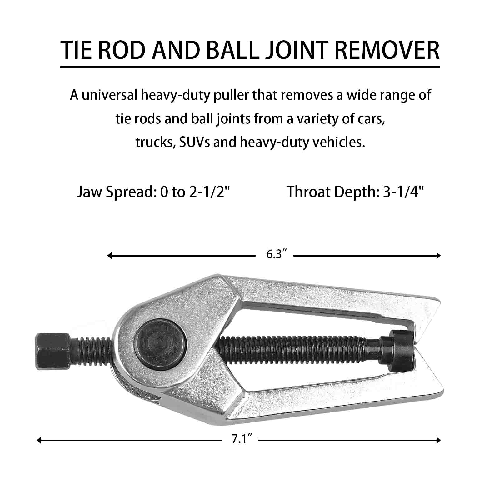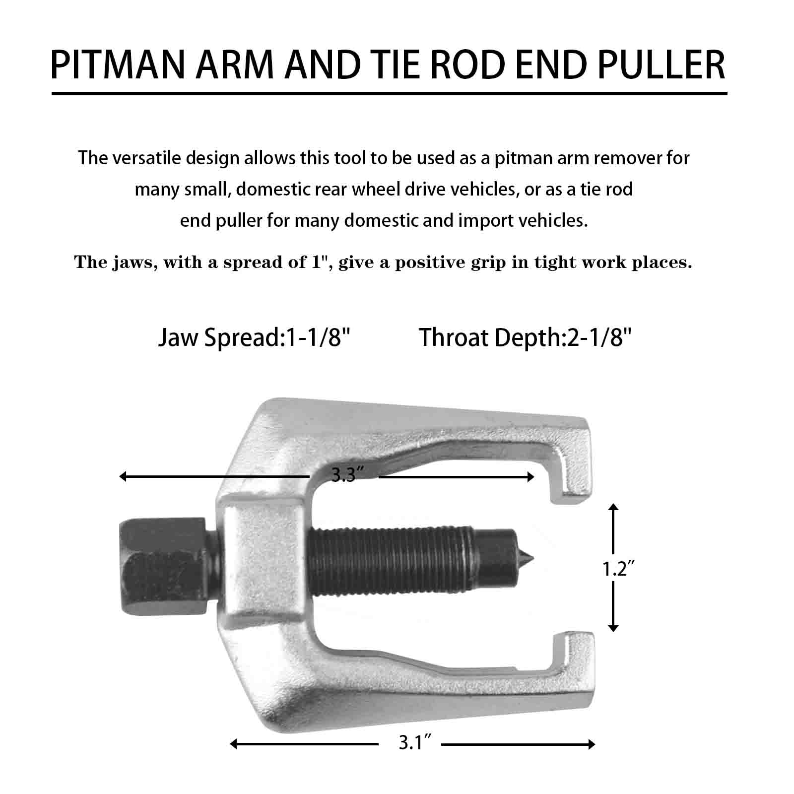 Easy Removal of Most Types of Pitman Arms, Tie Rods and Ball Joints.