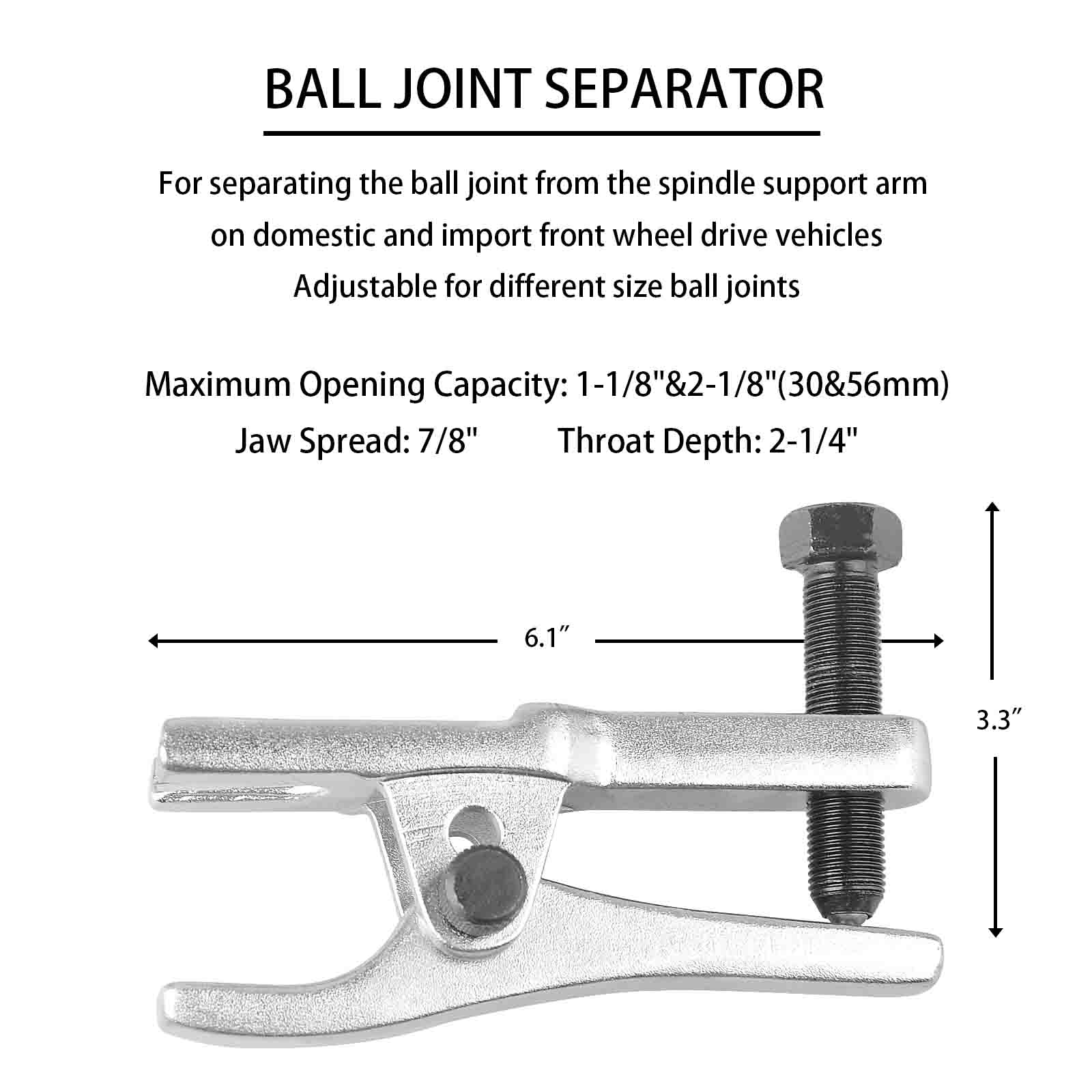 Press Type Ball Joint Separator Allows for Ball Joint Removal Without Damage to Boots and Other Parts.