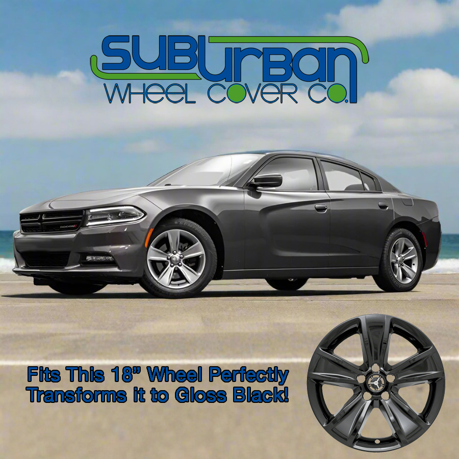 These wheel skins fit the matching 18" 5 spoke aluminum wheel only (see vehicle photo). They are simple to install and take only minutes to put on. Once installed your Charger SXT will look as if it has black wheels! These high quality skins are made out of durable gloss black painted ABS plastic for a lightweight, long lasting finish. The price quoted is for a full set of 4.