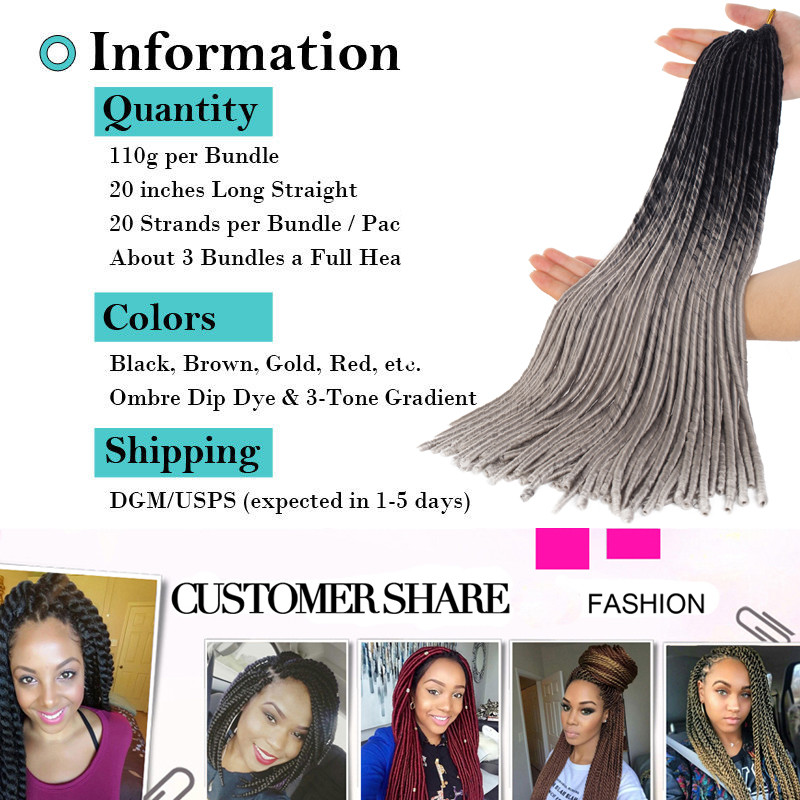 Quantity:Usually 5 Packs Can Full A Head,Looks More Thick,Need to 7 Packs. item type: Crochet Braid Hair extension material:Heat-Resistant Synthetic fiber unit weight:115 gram packing:20Strands/set craft:Soft Dread Lock Length: 24 inch