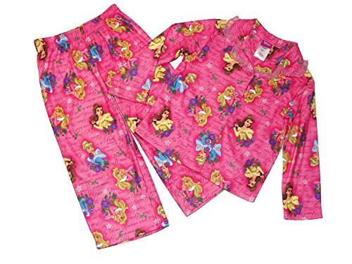 She'll love the soft fabric and colorful Disney Princess graphics. Features Cinderella, Belle and Aurora in a pretty print. The pajama pants have a full elastic waist. Of a medium weight polyester flannel, flame-resistant. Disney