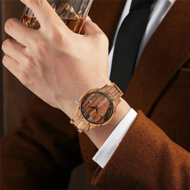 The watch is made from natural wood and is wrapped by hand, so it may have some natural harsh lines and a few blemishes.