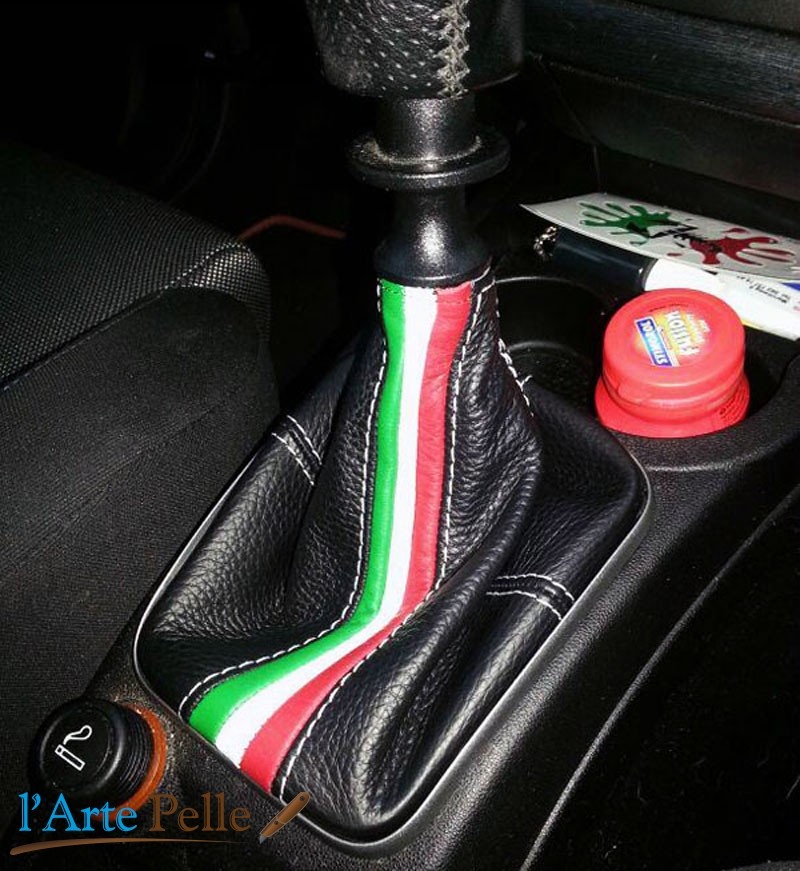 | Cuffia leva cambio Fiat Punto Evo vera pelle nera + tricolore |