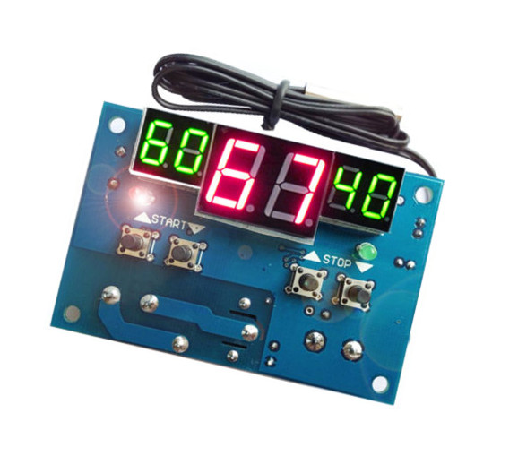 ![]() Note :Relayoutputinterface is aswitch,whenit working ,thesetwoportsare connected, Ifnot work,these twoportsarenotconnected. Pls know it . !!!!!Specifications: Temperature range :-50-110 ℃ Dimensions: 48.5 * 40mm Temperature control mode: ON / OFF Resolution:When temperature is 0.1℃, the resolution is -9.9~99.9, other temperature segment is 1℃ Control accuracy: 0.1 ℃ Hysteresis accuracy: 0.1℃ Refresh rate: 0.5S High temperature protection: 0-110℃ Supply voltage: DC 12V Static current: ≤ 35MA, attract current ≤ 65MA Output voltage: DC 12V Output power: 20A relay Measurement input: NTC (10K 0.5%) Waterproof Sensor Environmental requirements: -10 ~ 60 ℃ ,Humidity 20% -85% How to use: Connect the power supply and the load, you can supply to the controller, Is displayed as a measured temperature, Press the SET button, the display flashes the temperature, Press - to set the desired temperature, After setting press SET to confirm return, The controller automatically performs the relay by setting off! Lights, LED status descriptions: Indicator: Off The relay is switched off, Always indicate the relay is closed. LED: Shows LL is the sensor open, showing ?HH is out of range, the thermostat will be forced to close the relay, the display --- as high temperature protection. W1401: ![]() 1. Digital Temperature Controller2. Condition: New 3. Three display window(srart, in progress, stop) 4. Automatic heating or cooling according to the temperature 5. Setting and testing range -9~99℃ 6. Control accuracy:1℃ 7. Temperature measurement accuracy:1℃ 8. Refresh rate: 0.5S 9. Input power: DC9-15V 10. Environmental requirement:-10~60℃ , humidity 20%~85% 11. Output: relay input, capacity 220v 10a/12v 10a 12. Measuring inputs: NTC(3950-10K 1% ) Waterproof type sensor 13. Size: approx. 78 x 51mm 14. Start light: red 15. Stop light: green 16. Color is shown as pictures PLS NOTEthat due to lighting effects, monitor's brightness/ contrass settings ect, there could be some slight differences in the color tone of the pictures and the actual item! Package includes: -9-110°C DC 12V Red LED W1209/W1401 Digital Thermostat Temperature Controller