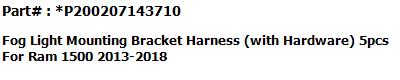 FOR DODGE PICKUP RAM 1500 2013-2018 (WITH 2 PIECE BUMPER) #1 FOG LAMP MOUNTING BRACKET LH=DRIVER SIDE (WITH HARDWARE) #2 FOG LAMP MOUNTING BRACKET RH=PASSENGER SIDE (WITH HARDWARE) *** DOES NOT FIT PLASTIC BUMPER |