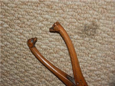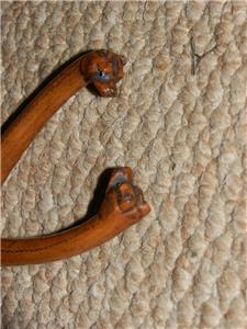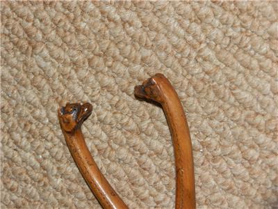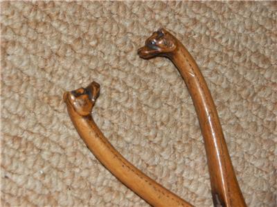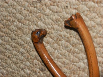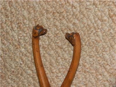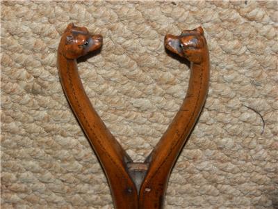 This A fine figure depicting a pair of Fox Hounds heads is superbly mounted on a treen wooden glove stretcher.