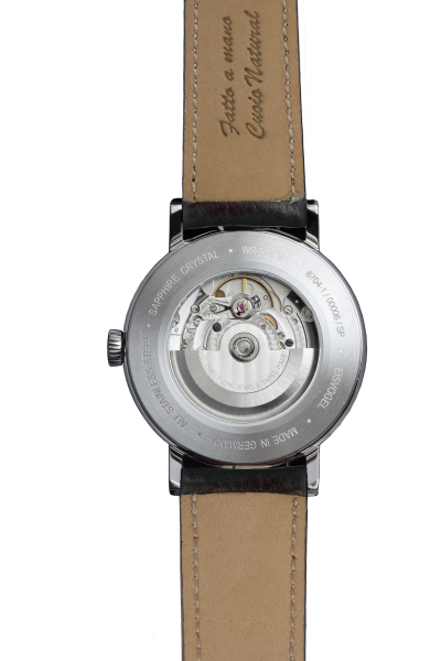 Ein mechanisches Uhrwerk mit Aufzugautomatik (Sellita SW 290, Swiss Made, 31 Steine) treibt diese zeitlose Schönheit an.