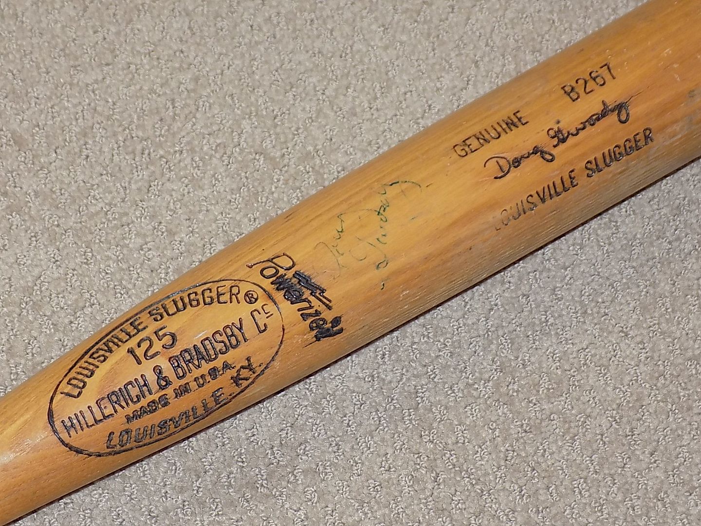 You are bidding on an H&B Louisville Slugger bat from 1978-80 that measures 34". Signature model #B267. Bat shows heavy use, pine tar, and cracks in the handle and the barrel. His uniform #40 is on both ends. Signed in blue on the barrel. We guarantee the autograph will pass PSA, DNA, and/or JSA authentication. Gwosdz played for the San Diego Padres. Shipping 15.00 to continental U.S. We now accept major credit cards and Paypal! Check my feedback.