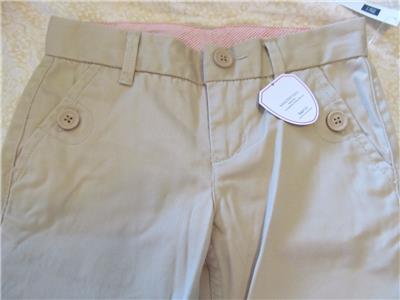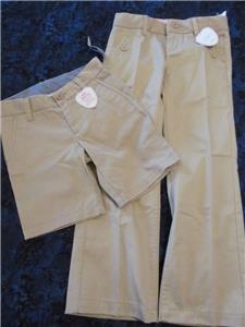 From Gap's Uniform line, Gap Sheild Tan pants or shorts, each listed seperately . New with tags from Gap online in size 7 slim. New without tags pants in size 4. (RV $24.95).