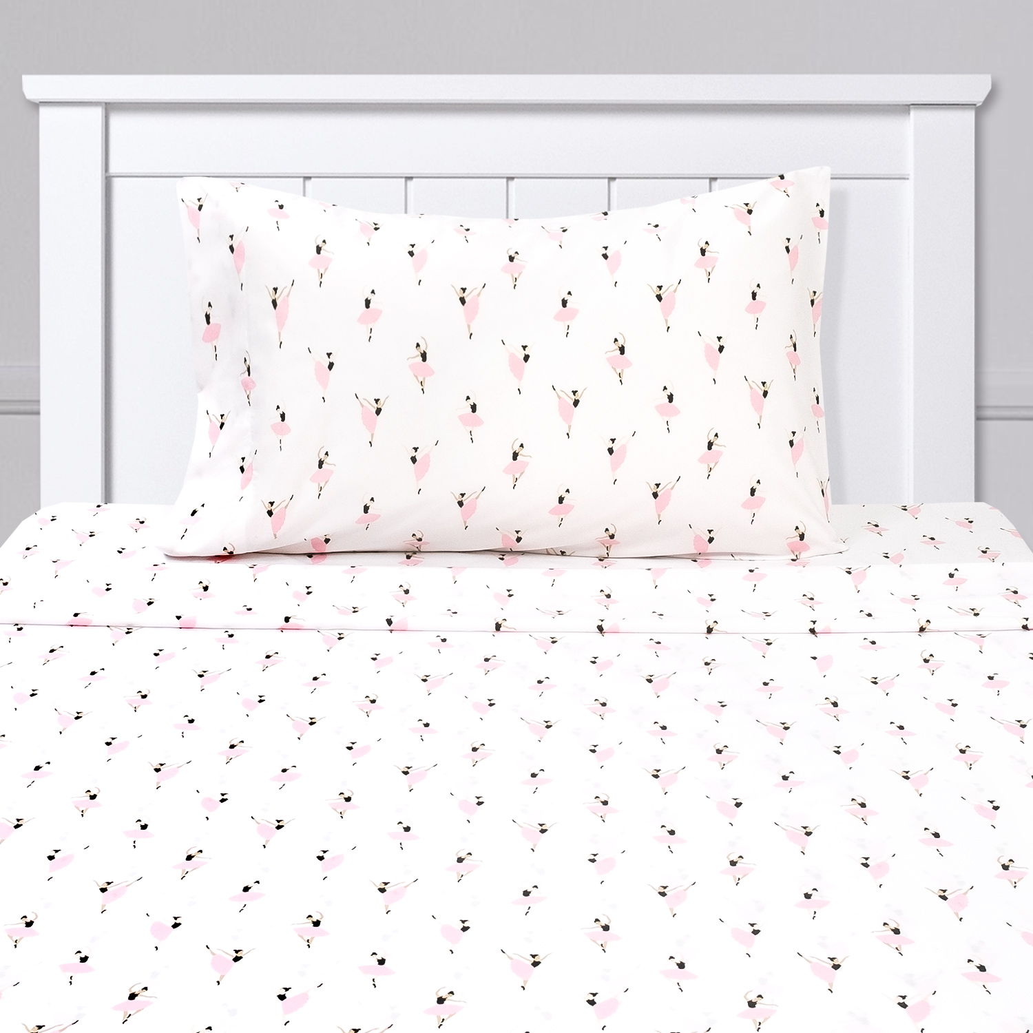 Set the stage for sugarplum dreams with the Sweet Home Collection Ballerina Sheet Set. Featuring twirling ballerinas and double brushed microfiber construction, they will love to sleep on this ultra soft ballerina sheet set.