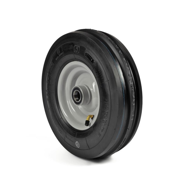 Das Komplettrad 3.50-6 mit dem Reifen K406 von Kenda findet seinen Einsatz häuptsächlich in der Landwirtschaft sowie im Garten- und Landschaftsbau. Sein klassisches 3-Rip-Profil sorgt für gutes Spurverhalten und seitlichen Halt an Hanglagen. Die pulverbeschichteten Stahlblech-Felgen in der Größe 2.50Ax6 sind mit hochwertigen, wartungsfreien Kugellagern ausgestattet, und garantieren somit für eine lange Lebensdauer. Mit einem Achs-Ø von 25 mm und einer Nabenlänge von 75 mm eignet sich das Rad optimal für Heumaschinen wie Kreissler, Schwader, Wender, Heuma uvm.
