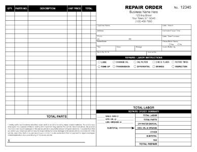 - Get the details. Includes room to describe labor and parts, as well as vehicle and customer information.