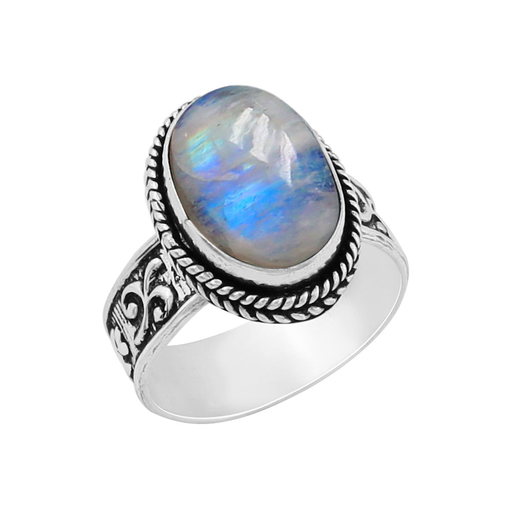 Oval Shape Gemstone Solitaire Ring 925 Silver Plated Vintage Style Handmade