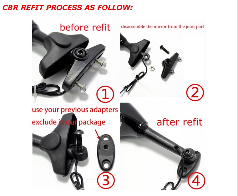 *If your bike is Honda Sports bike such as CBR, you could disassemble the mirror from the joint part and bolt it on your stock mirror mount on the bike.