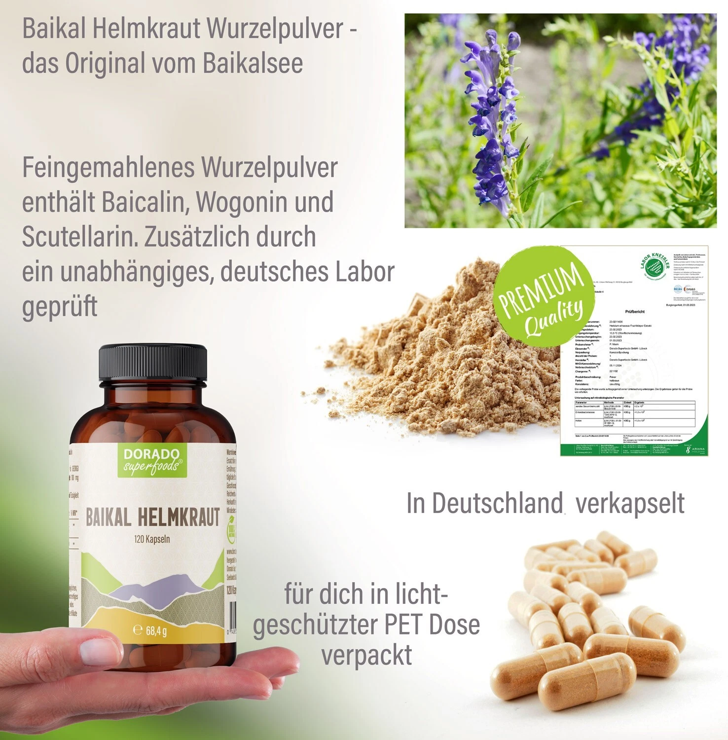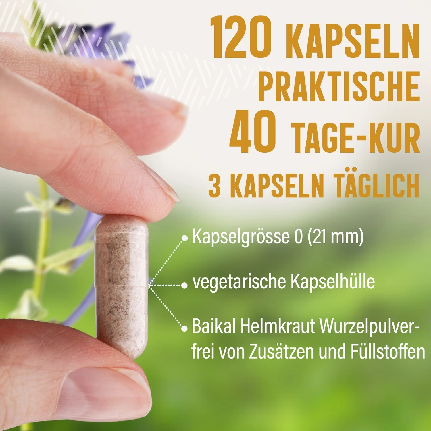 | Zutaten pro Kapsel: | 470 mg Scutellaria baicalensis GEORGI Wurzelpulver, 100 mg Hydroxypropylmethylcellulose (Kapselhülle) |