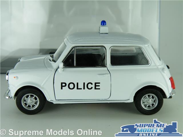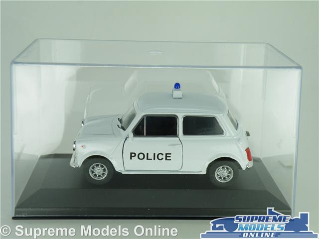 MINI COOPER MODEL CAR POLICE WHITE + DISPLAY CASE 1:36 SCALE WELLY CLASSIC K8
