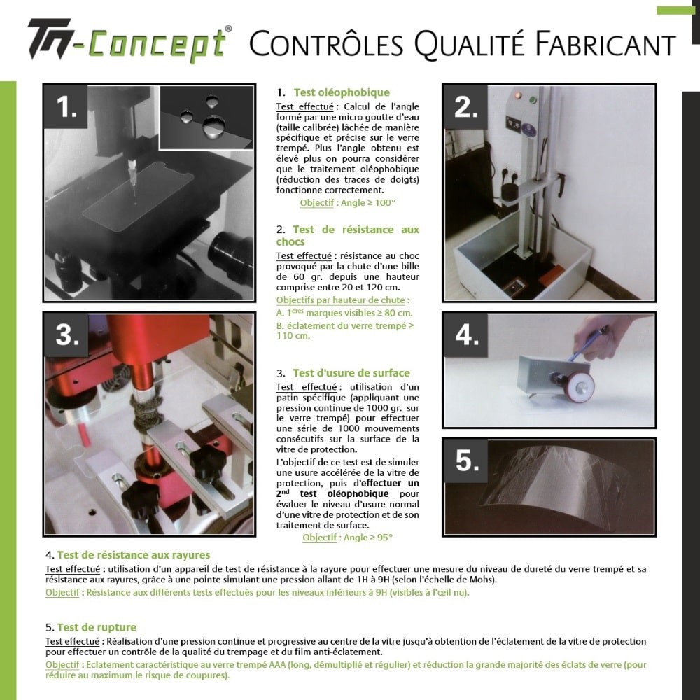 Protection contre les rayures : résistance contre les chocs et la casse de l'écran (indice 9H sur échelle de Mohs - notation de 1 à 10)