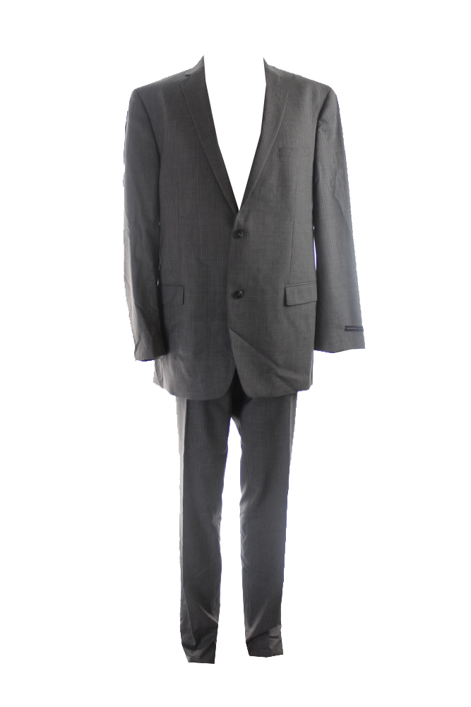 Marc York Andrew Marc Mens Medium Grey Striped Slim-Fit Suit 44L-37W