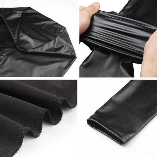 Women Stretch-Fit Faux Leather Shaper PU High Waist Leggings Pants Warm Leggings