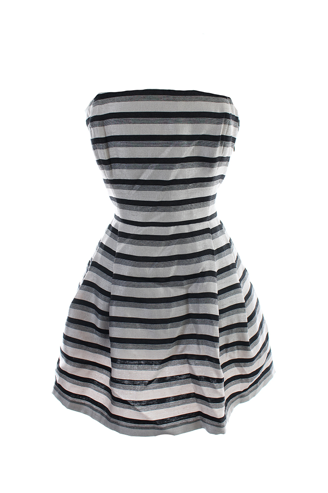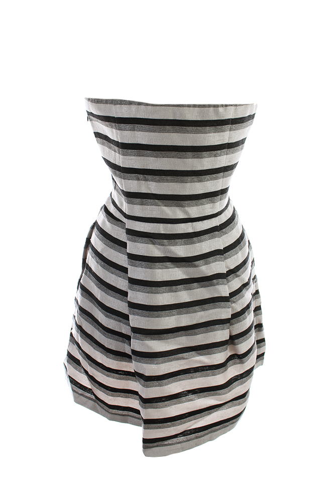 RACHEL Rachel Roy Womens Grey Black Strapless Striped Pleated Bustier Dress 12