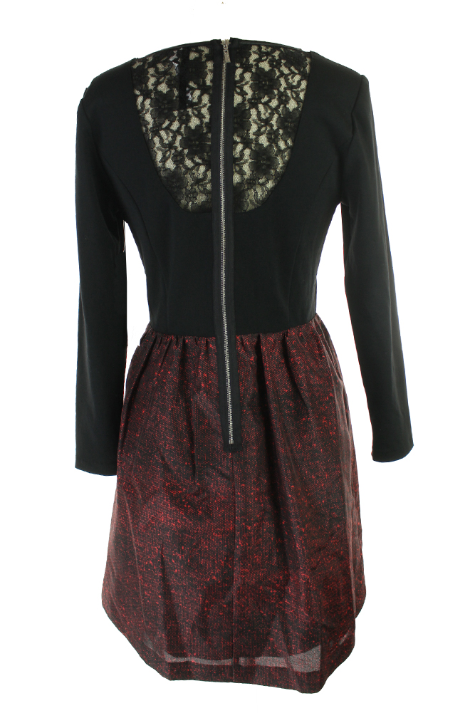 Kensie Womens Black-Red 3/4-Sleeve Lace-Inset Dress XL