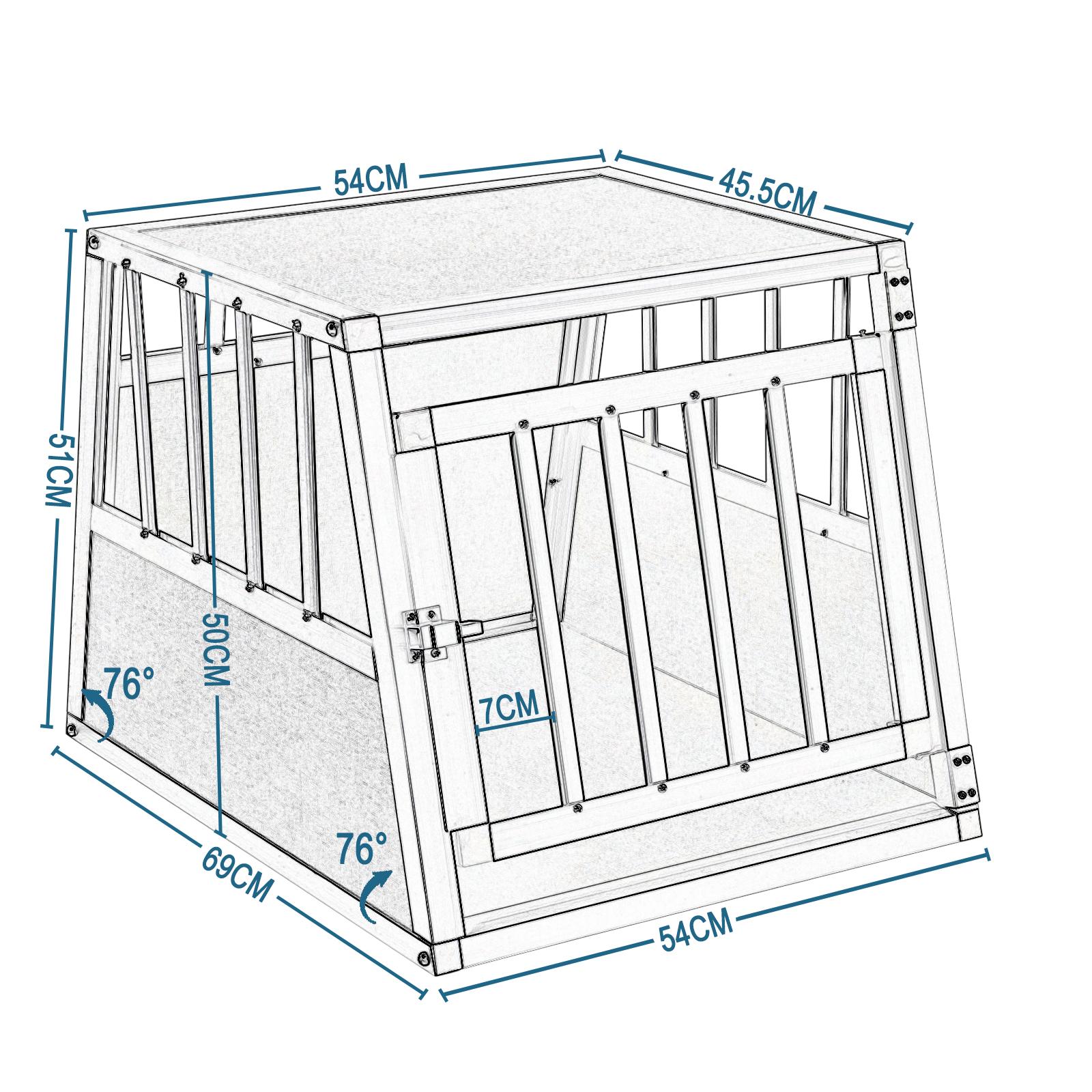 - Maße: Höhe 50 cm; Bodenfläche 54 x 69 cm; Deckenplatte 54 x 45,5 cm.