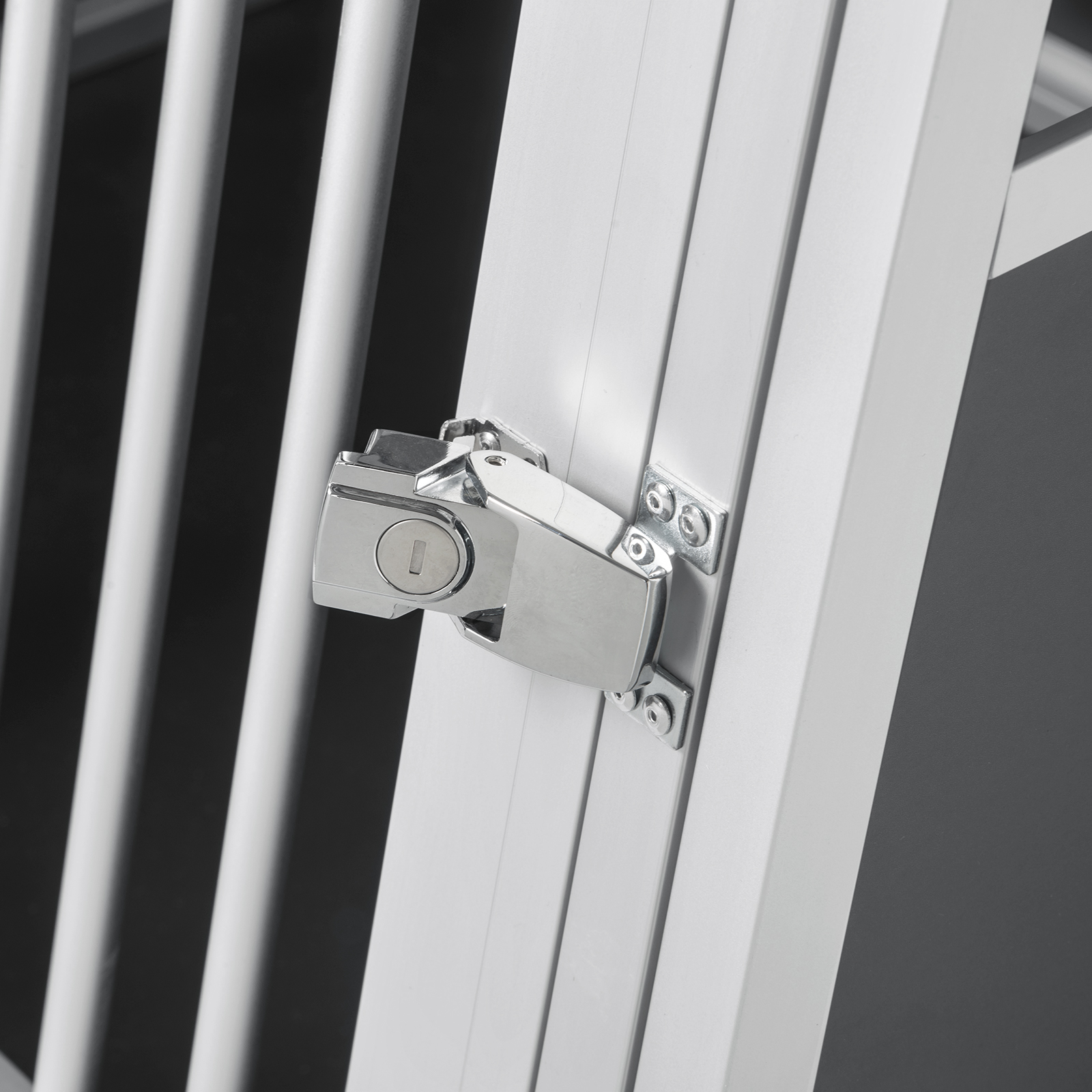 - Mit einer Tür, einem Türschloss.